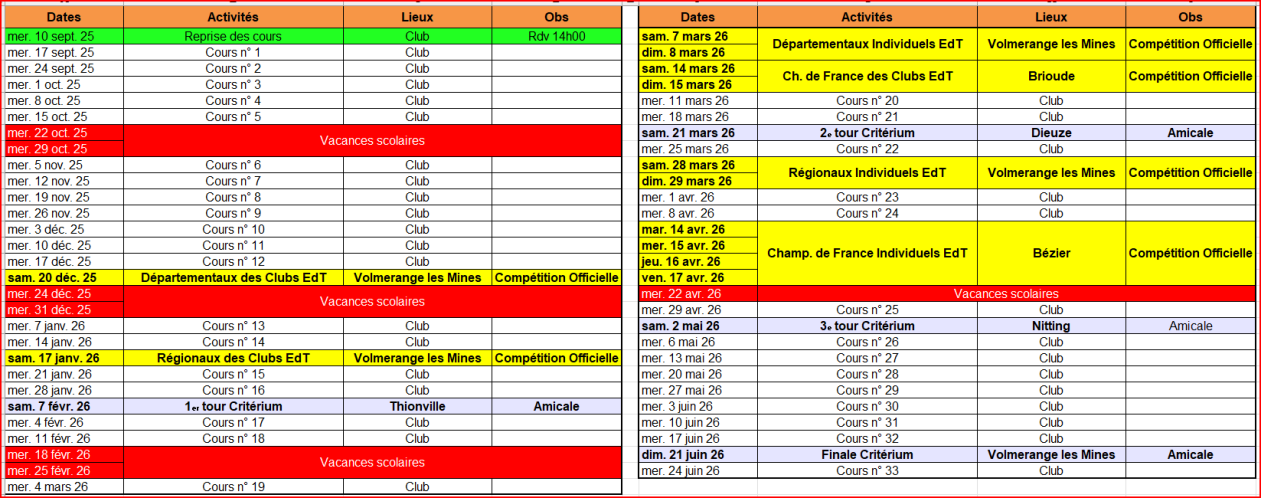CALENDRIER ECOLE DE TIR SAISON 2025 - 2026